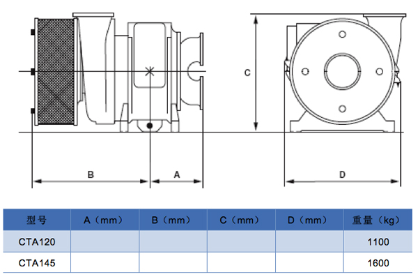 CTA 系列增壓器圖表_尺寸及重量